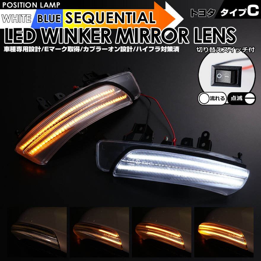 トヨタ タイプC ポジション機能付(ホワイトLED/ブルーLED) 切替スイッチでウインカーの点灯パターン切替可能 シーケンシャル(流れる)発光⇔点滅発光 LEDウインカーミラーレンズ [適合車両] -TOYOTA- ・アルティス 後期 (ACV40N/ACV45N)※2009.1~ ・ウィッシュ 20系後期 (ZGE20G/ZGE20W/ZGE25G/ZGE25W/ZGE22W) ※2012....